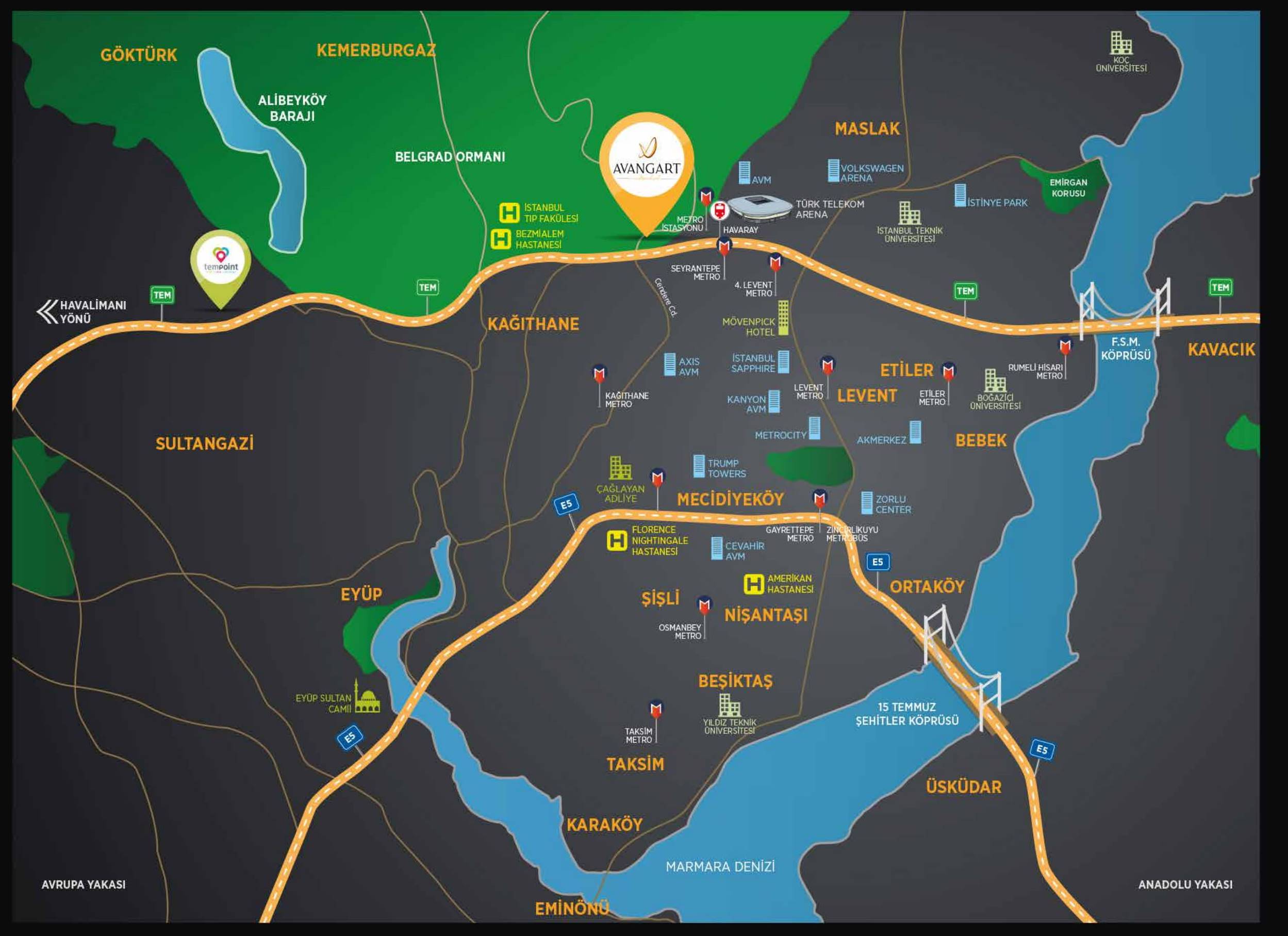 این پروژه در قسمت اروپایی استانبول در منطقه ساریر قرار گرفته است. این پروژه به دلیل نزدیکی به سیستم های حمل و نقل عمومی نظیر مترو، متروبوس، اتوبوس و … نظر بسیاری از سرمایه گذاران را به خود جلب کرده است و در نزدیکی مناطق لوکس استانبول است نظیر لونت، ماسلاک و اتیلر قرار گرفته است که با امکانات فوق العاده خود به زندگی شما ارزش میدهد شاید بتوان گفت این پروژه یکی از لوکس ترین پروژه های استانبول است که دسترسی راحتی به مراکز خرید، سیستم حمل و نقل و بزرگراه اصلی استانبول دارد