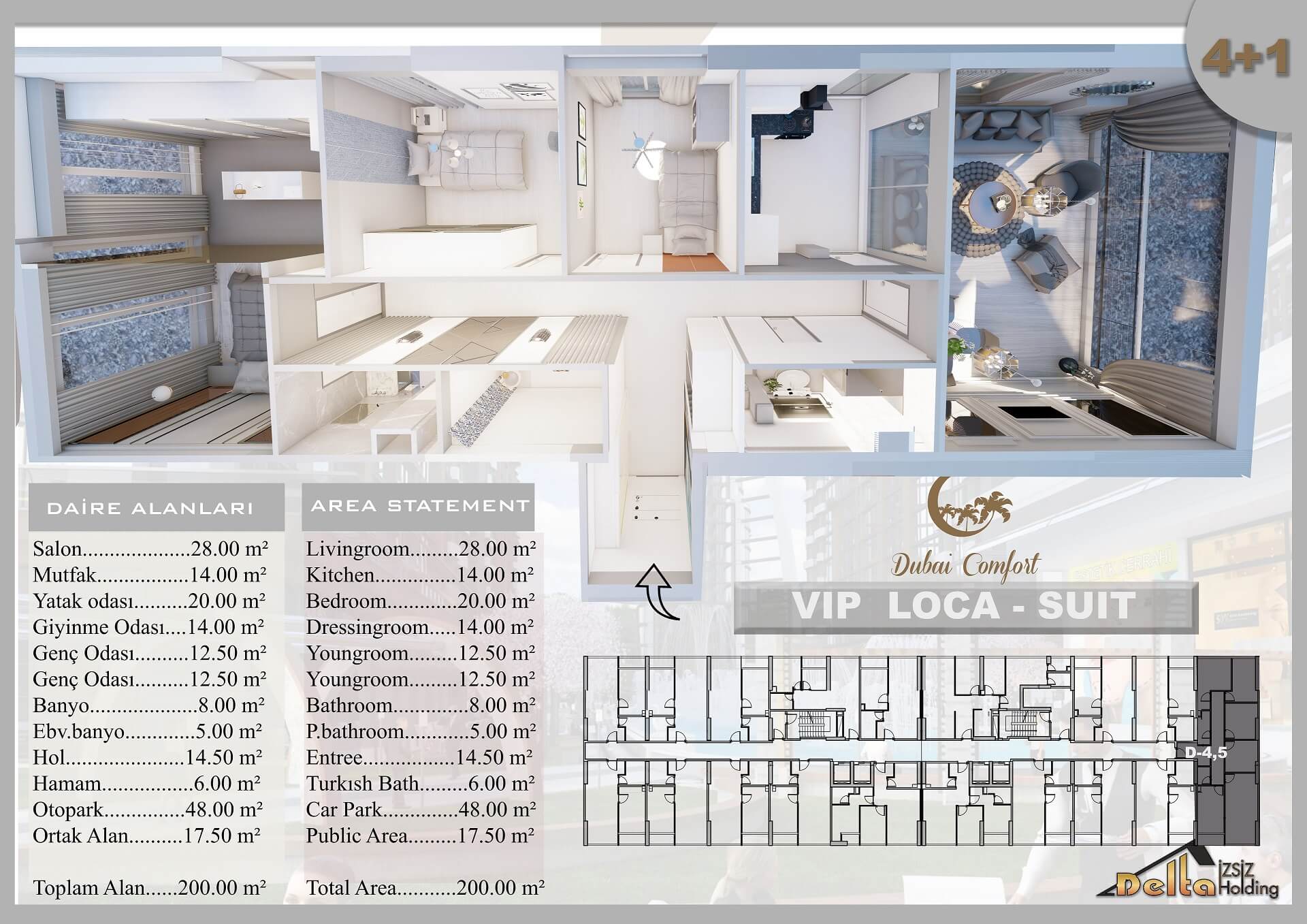 در قسمت اروپایی استانبول، محله اسنیورت می باشد. به جرات می توان گفت این پروژه مسکونی یکی از لوکس ترین پروژه های استانبول در بخش اروپایی است که با امکاناتی که دارد زندگی شما را راحت تر خواهد کرد و اولین و تنها پروژه ای است که از واحد های مسکونی، هوم آفیس، دفاتر کار، مغازه های تجاری،بیمارستان، مدرسه، مراکز خرید، هتل و پارک آبی تشکیل شده است.این پروژه در زمینی به مساحت ۲۷۰۰۰ متر مربع ساخته شده و یک پروژه لوکس که تمامی نیازهای شما را از بیمارستان گرفته تا مراکزخرید برطرف می کند.و از ۷ بلوک تشکیل شده که شامل هتل، بیمارستان، سالن آمفی تئاتر، بلوک های اقامتی، مراکز خرید روباز، هوم آفیس می باشد.بیمارستان این مجموعه دارای ۱۰۲ تخت که کاملا به سیستم هوشمند و تکنولوؤی روز دنیا مجهز می باشد.در مجموع این پروژه دارای ۱۰۶۸ واحد مسکونی و هوم آفیس است. در پائین تمامی این بلوک ها، مراکز تجاری ساخته شده و تمامی واحد های مسکونی آن دارای بالکن وسعی است. واحد های طبقات بالا نیز دارای نمای رو به دریا هستند.یکی از امتیازات ویژه آن دسترسی راحت و آسان به بزرگراه های مهم استانبول و سیستم حمل و نقل عمومی است.