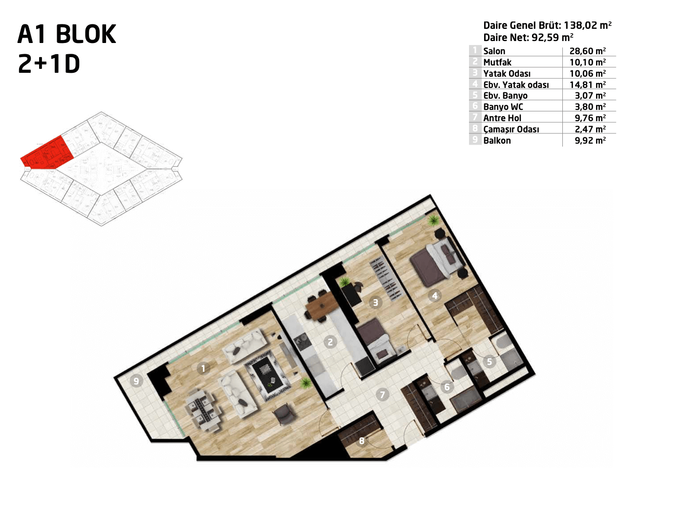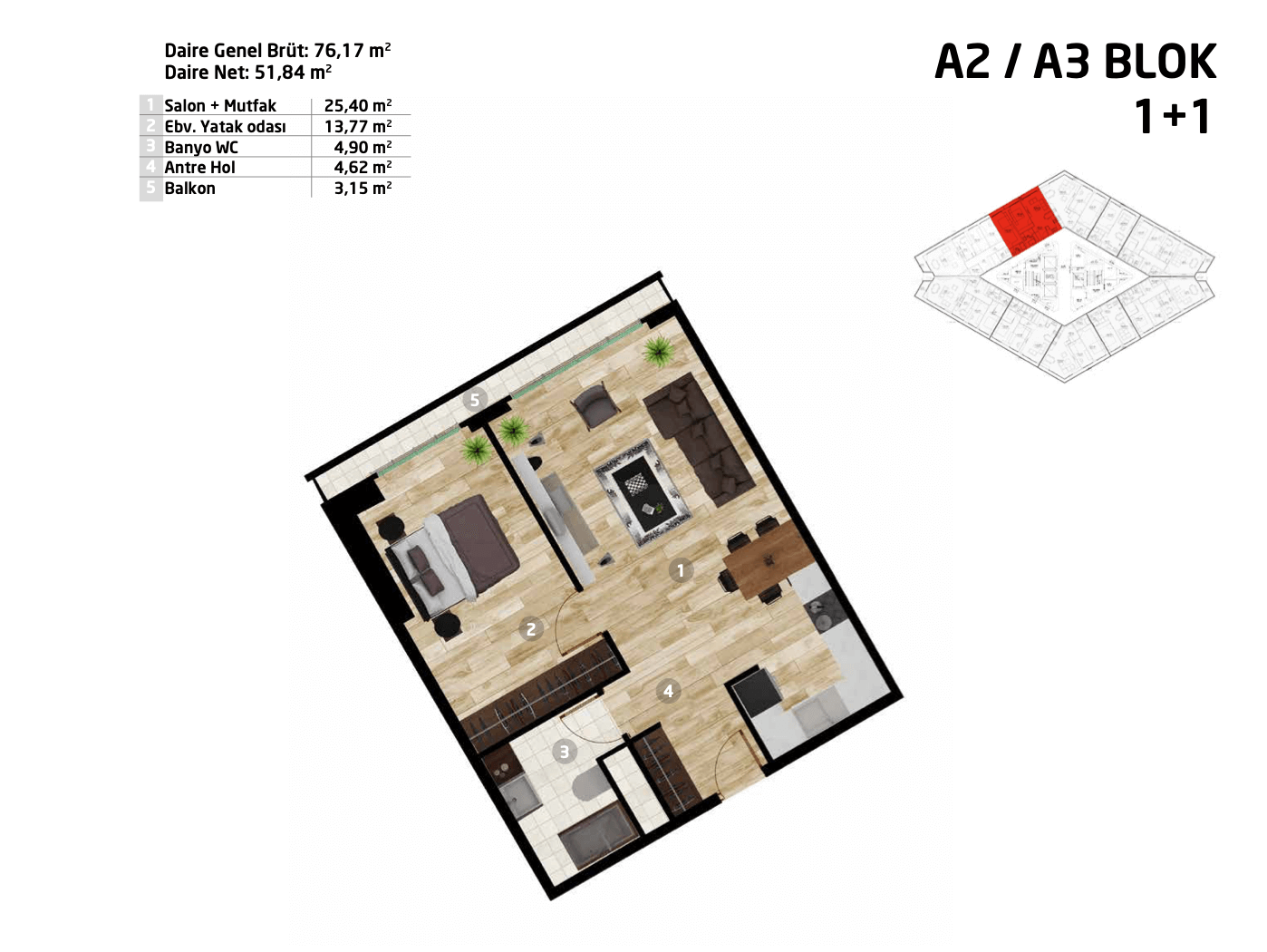 این پروژه در بخش آسیایی استانبول منطقه کادیکوی و محله فیکیرتپه قراردارد. محله فیکیرتپه در حال بازسازی کامل است و واگذار شده به شرکت های بزرگ ساخت و ساز. حدود نصف این محله بازسازی شده است و مابقی طی 3سال آینده تکمیل خواهد شد. دارای منظره زیبا از تنگه بسفر از طبقات بالایی دارد. روبروی این مجتمع، مرکز خرید بسیار لوکس و شیک آکاسیا قرار دارد.
