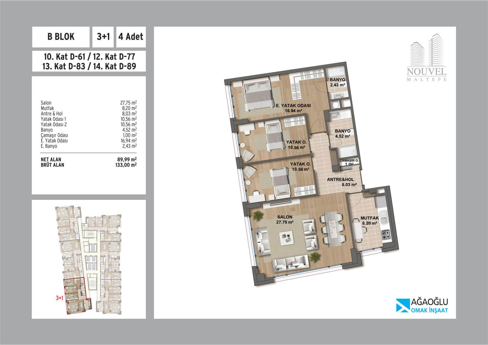 این پروژه در منطقه مالتپه (آسیایی استانبول)، در مجاورت مشهورترین خیابان قسمت آسیایی استانبول (جاده بغداد) و خط ساحلی قرار گرفته و شما می توانید با منظره دید عالی از تمام زیبایی های دریای مارماره و جزایر پرنس بهره مند شوید. این منطقه رشد قیمت ۲۲% را نسبت به سه سال گذشته به خود اختصاص داده است. وضعیت اقتصادی اجتماعی این منطقه دارای نمره B می باشد.این مجتمع مسکونی در ۲ بلوک از ۱۶۳ واحد مسکونی در زمینی به مساحت ۵ هزار و ۳۰۰ متر مربع تشکیل شده است. در این پروژه انواع واحد ها از تک خواب تا پنج خواب موجود می باشد. اندازه آپارتمان ها در این پروژه بین ۶۴ متر مربع تا ۲۶۰ متر مربع طراحی شده است. در این پروژه، باتوجه به نیاز ها واحد ها از نوع آپارتمان های معمولی، بالکن دار و دوبلکس موجود می باشند.این پروژه که از نظر موقعیت مکانی بسیار نزدیک به ساحل است و شما می توانید از زیبایی های دریای مارماره و جزایر پرنس لدت ببرید، این پروژه با قرارگیری در منطقه ای با قیمت بالا ، از چشم خریداران مسکن دور نمی ماند.