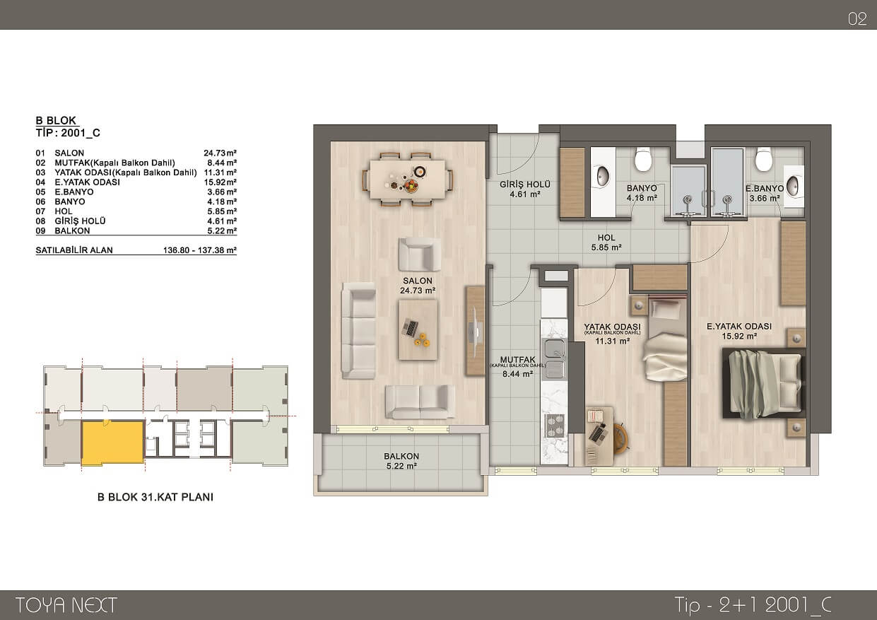 این پروژه به ساکنانش پروژه ای را که بتوانند از فضاهای زندگی خود در موثر ترین شیوه استفاده کنند ارائه می کند. ارائه یک راه حل معماری جدید با یک مفهوم دیگر، این پروژه یک فرم معماری منحصر به فرد با استانداردهای تکنولوژیکی فراهم می کند که ساکنان آن را، با اتوماسیون هوشمند خانه و اقدامات امنیتی خاص و با جزئیات خوب تعجب خواهد داد. ساکنان این مجتمع می توانند با استفاده از یک لمس انگشت روشنایی را فعال کنند، حمام را پر کنند، خانه را گرم کنند و سیستم الکتریکی را کنترل کنند حتی قبل از اینکه به خانه برسند. با تمام این مزایا، این پروژه در بزرگراه Basin Ekspres قرار دارد که به عنوان مرکز جدید زندگی تجاری استانبول، با اتصال به بزرگراههای E-5 و TEM نشان داده شده است.با نزدیکی به فرودگاه آتاتورک و CNR Expo، فرودگاه سوم، جاده ای که هنوز در حال ساخت است و در چند قدمی ایستگاه متروی Bakırköy – Mahmutbey است که در حال ساخت است و باعث می شود شما احساس نزدیکی بسیار به هر نقطه از شهر داشته باشید.این پروژه که بر روی قابلیت استفاده منطقه در آپارتمان ها و همچنین اتوماسیون هوشمند خانه و موقعیت استراتژیک تمرکز می کند، زندگی ساکنان آن را با راه حل های نوآورانه مانند دیوارهای تاشو، درب های کشویی فضای ذخیره سازی در کمد، طراحی هوشمندانه ی قفسه مبلمان، که می تواند به راحتی جمع شده، میزهایی که به نظر می رسد که از هیچ جا ظاهر می شوند.